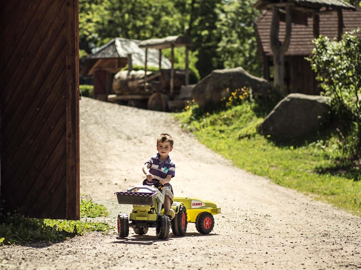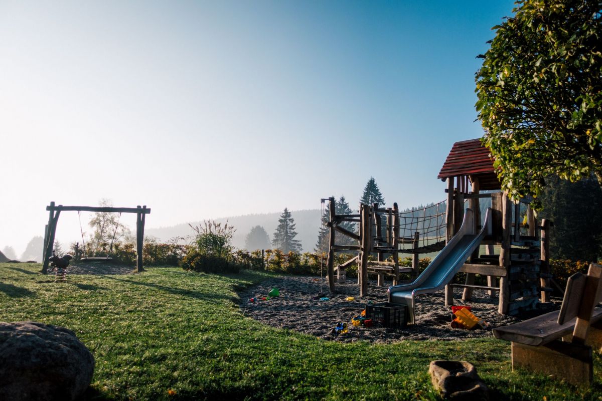 - Ein Kinderspielplatz mit Kletterhaus, Kiesrutsche, Federwippe, Rutsche, Schaukel. Sandspielzeug und Bobbycars können ausgeliehen werden.